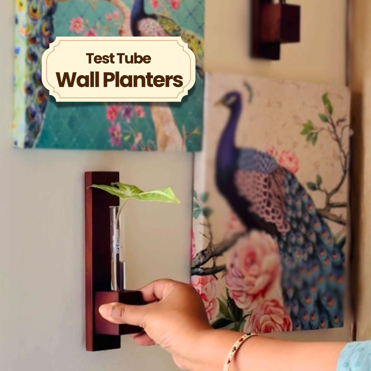 Test Tube Wall Planter with Wooden Holder (set of 3)