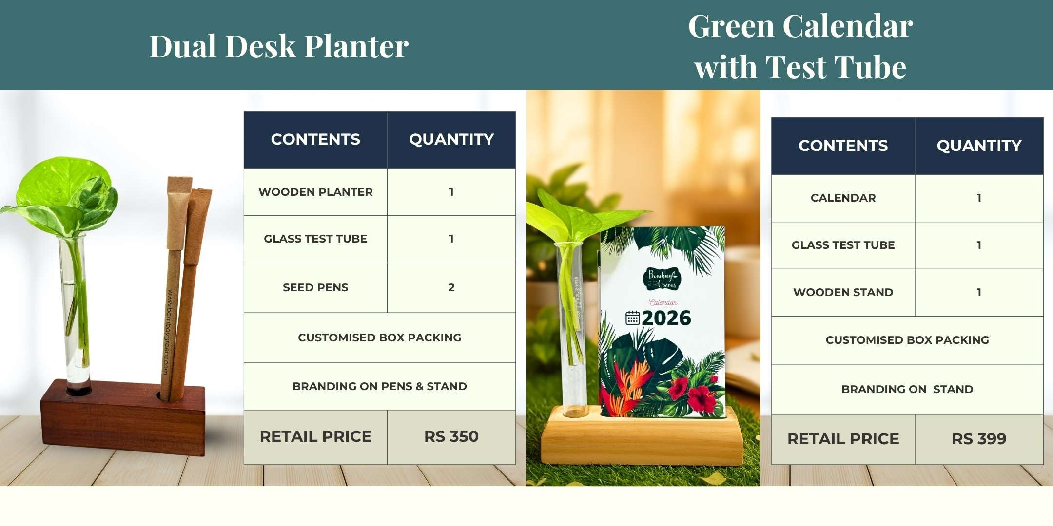 Our sustainable gifts include test tube wall planters, sustainable stationery items, eco friendly grow kits, decorative wooden planters and many others.
