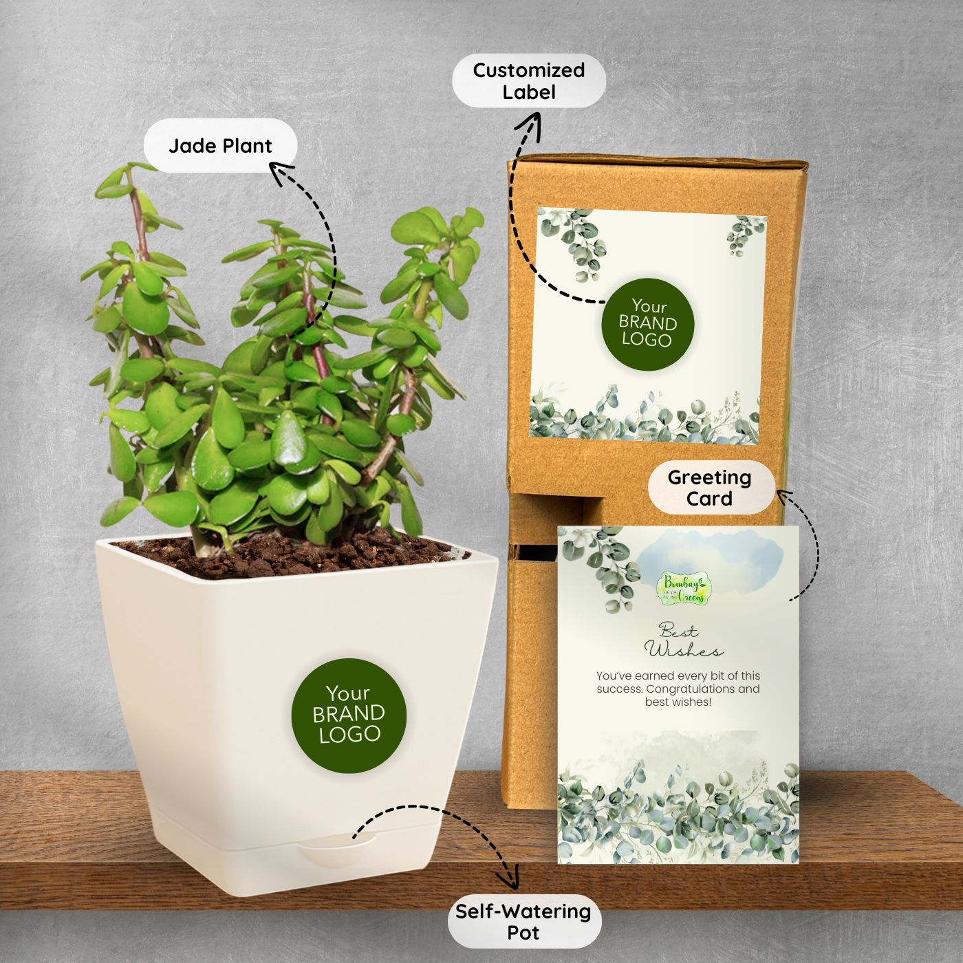 50 Live Plants in self-watering pots(Customizable pot) 50 Brown Boxes with customized labels 50 Thank you cards |