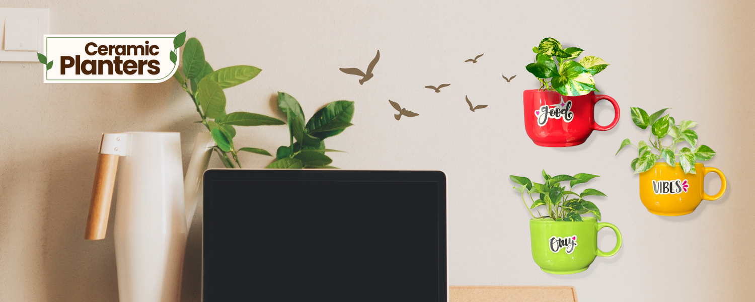 Bombay Greens' Ceramic Cup Planters add a touch of rustic elegance to any space. These unique and handcrafted planters are perfect for showcasing your favorite small plants and succulents. The hanging design maximizes space and creates an eye-catching display, adding a touch of greenery to your walls while maintaining a minimalist aesthetic.