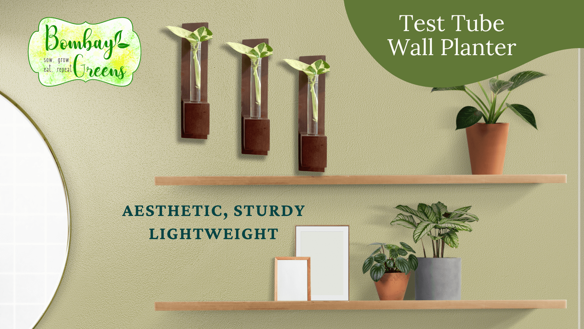 - Eco-Friendly Wall Planter- Bombay Greens' wall hanging glass planters for indoor plants is a beautiful and sustainable way to display your plants. Hand Crafted from premium high-quality pinewood, these test tubes for plants are durable and weather-resistant, making them ideal for indoor use. Elevate your indoor settings with these durable test tube planters for living room or office. This does not include live plants